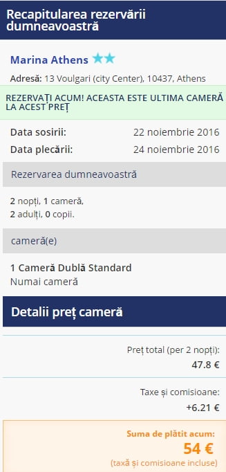 - Marina Athens – 54 euro / 2 nopti / camera dubla