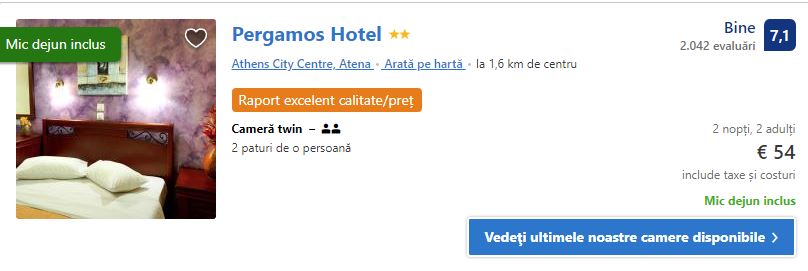 - Cazare 1: Pergamos Hotel – 54 euro / 2 nopti / camera dubla / mic dejun