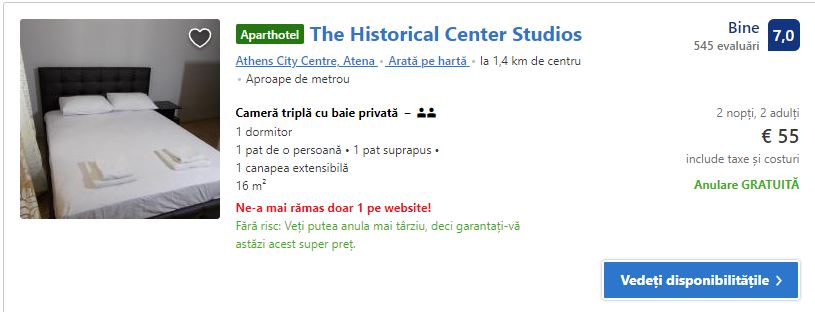- Cazare 2: The Historical Center Studios – 55 euro / 2 nopti / camera dubla