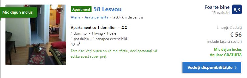 - Cazare 3: 58 Lesvou – 56 euro / 2 nopti / camera dubla / mic dejun