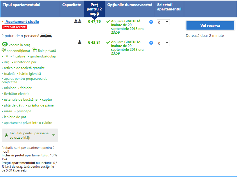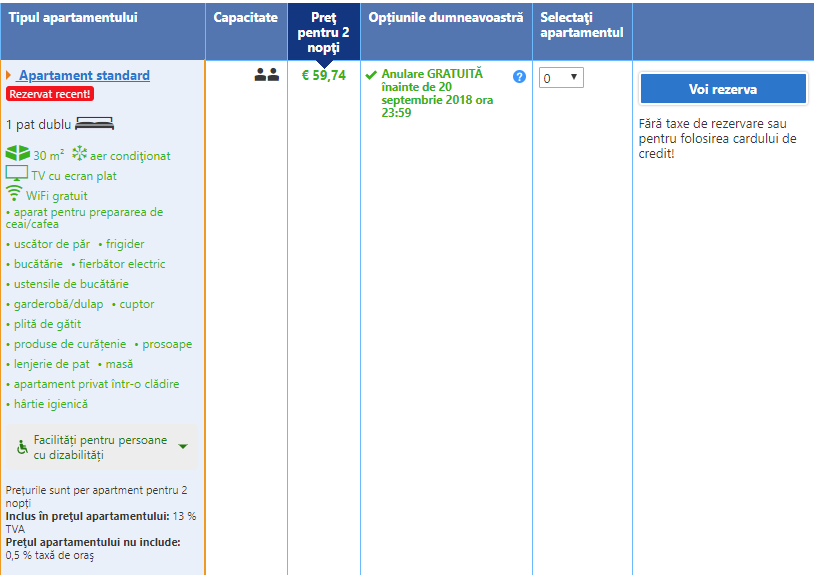 - Cazare 2: Irias Apartment – 60 euro / doua nopti / camera dubla / taxe incluse