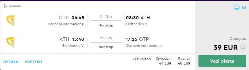 - Zbor: Bucuresti – Atena, 39 euro, dus-intors, Ryanair