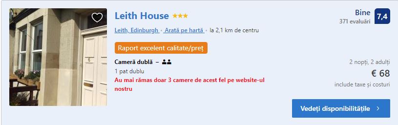 - Cazare 3: Leith House – 68 euro / 2 nopti / camera dubla