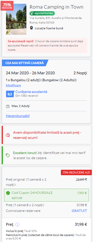 - Cazare 1: Roma Camping In Town – 40 euro / 2 nopti / bungalou