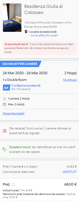 - Cazare 2: Residenza Giulia al Colosseo – 82 euro / 2 nopti / camera dubla