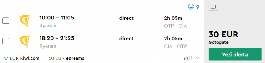 - Zbor: Bucuresti – Roma, 30 euro, dus-intors, operat de Wizz Air