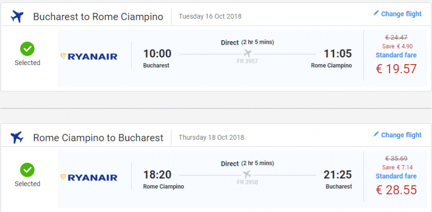 - Zbor: Bucuresti – Roma, 48 euro, dus-intors, Ryanair