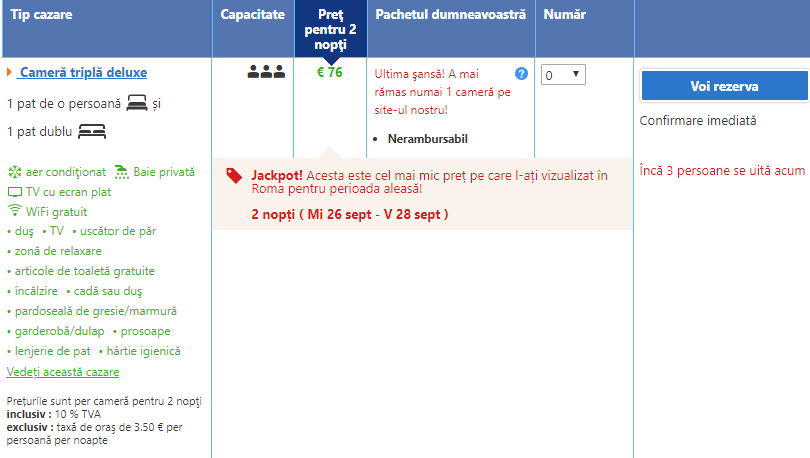 - Zbor: Bucuresti – Roma, 44 euro, dus-intors, Ryanair
