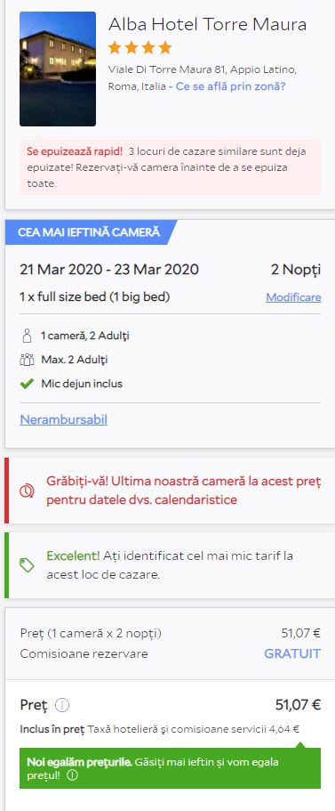 - Cazare 4: Hotel Fidene – 48 euro / 2 nopti / camera dubla