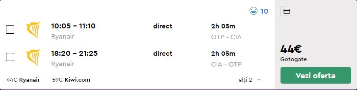 - Zbor: Bucuresti – Roma, 44 euro, dus-intors, operat de Ryanair