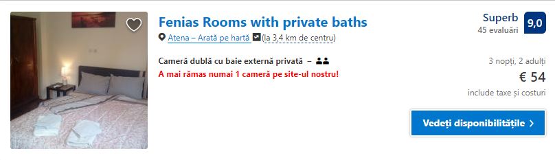 - Cazare 1: Fenias Rooms with private baths – 54 euro / 3 nopti / camera dubla