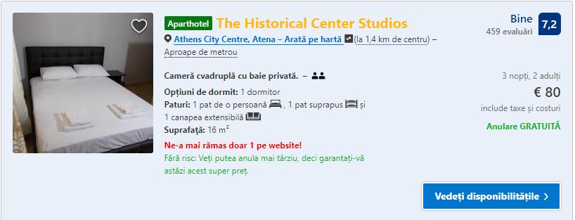 - Cazare 2: The Historical Center Studios – 80 euro / 3 nopti / camera dubla