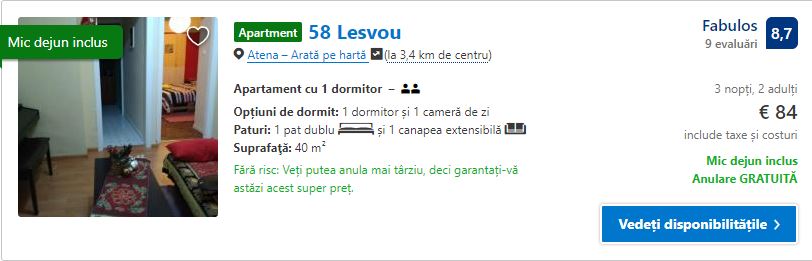 - Cazare 3: 58 Lesvou – 84 euro / 3 nopti / camera dubla / mic dejun inclus