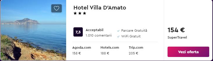 - Cazare (opt. 1): Hotel Villa D’Amato – 154 euro / 7 nopti / camera dubla