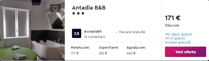 - Cazare (opt. 2): Antadia B&B – 171 euro / 7 nopti / camera dubla / mic dejun