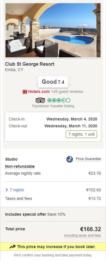 - Cazare 1: Club St George Resort – 166 euro / 7 nopti / camera dubla