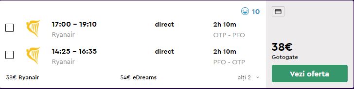 - Zbor: Bucuresti – Paphos, 38 euro, dus-intors, operat de Ryanair