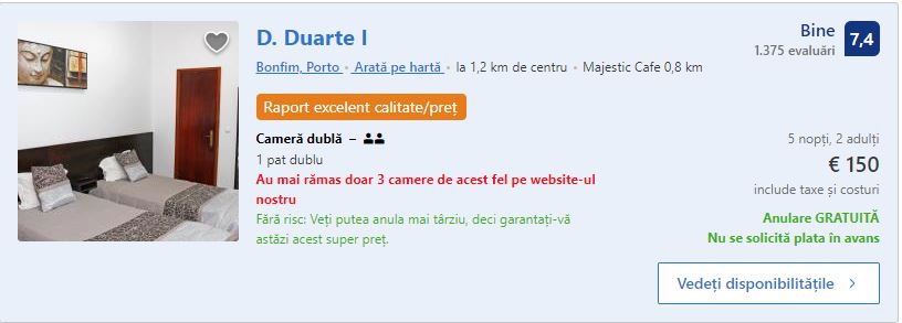 - Cazare 2: Residencial Dom Duarte – 150 euro / 5 nopti / camera dubla