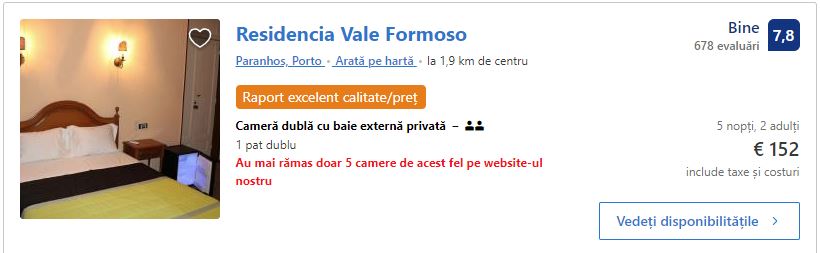 - Cazare 3: Residencial Vale Formoso – 152 euro / 5 nopti / camera dubla