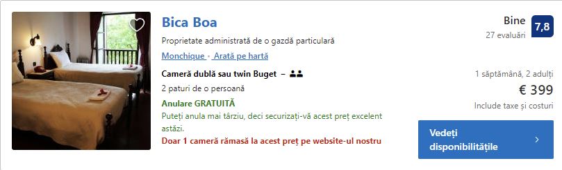 - Cazare 2: Bica Boa – 399 euro / 7 nopti / camera dubla