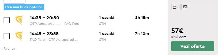 - Zbor: Bucuresti – Faro, 57 euro, dus-intors, garantie Kiwi