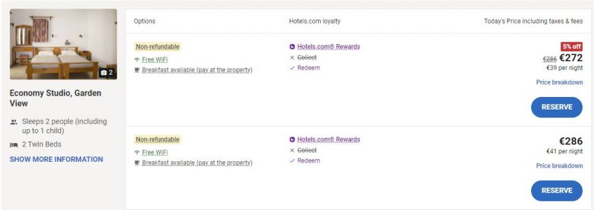 - Cazare 3: El Greco Studios – 284 euro / 7 nopti / camera dubla