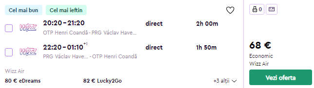 - Zbor Bucuresti – Praga, 68 euro, dus-intors, operat de Ryanair