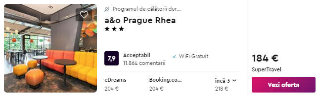 - Cazare (opt.1) a&o Prague Rhea – 184 euro / 4 nopti / camera dubla