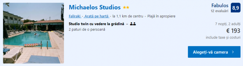 - Cazare 1: Michaelo Studios – 193 euro / 7 nopti / camera dubla