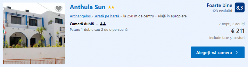 - Cazare 2: Anthoula Sun – 212 euro / 7 nopti / camera dubla
