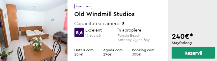 - Cazare 3: Old Windmill Studios – 240 euro / 7 nopti / camera dubla
