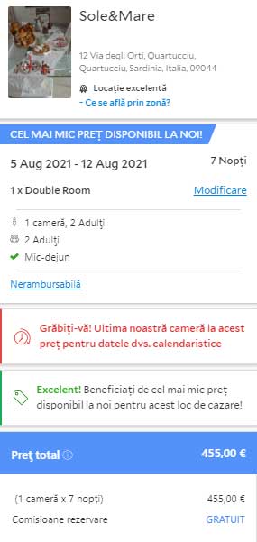 - Cazare 2: Sole&Mare – 455 euro / 7 nopti / camera dubla / mic dejun inclus