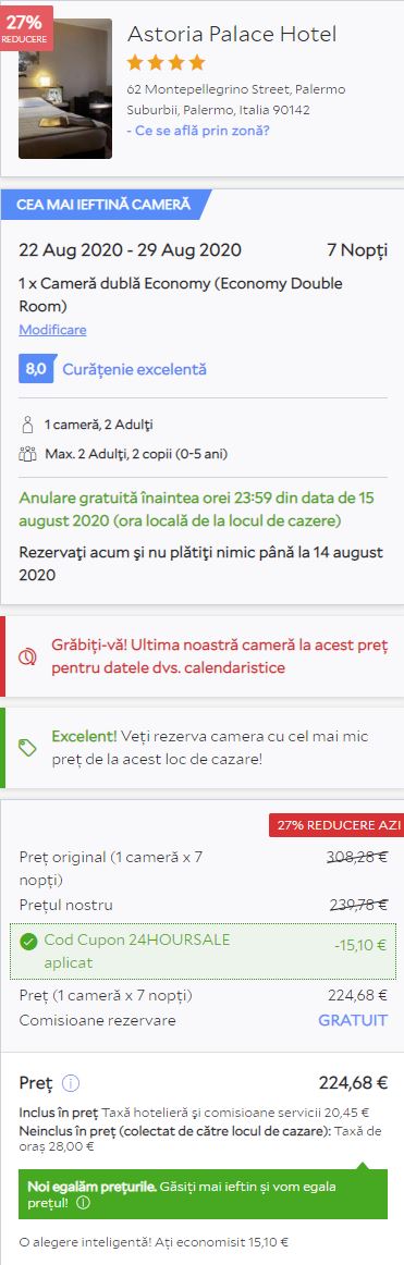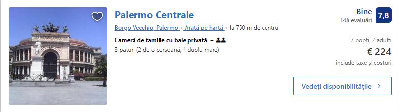 - Cazare 2: Palermo Centrale – 224 euro / 7 nopti / camera dubla