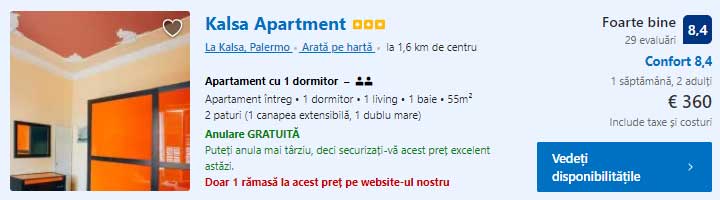 - Cazare 2: Kalsa Apartment – 360 euro / 7 nopti / camera dubla