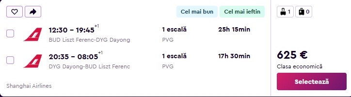 - Zbor: Budapesta – Zhangjiajie, 625 euro