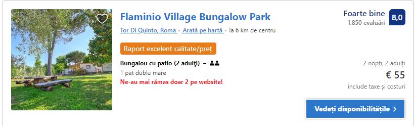 - Cazare 3: Flaminio Village – 55 euro / 2 nopti / bungalou cu patio