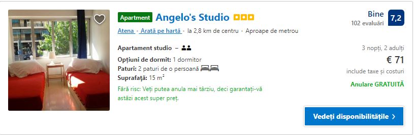 - Cazare 1: Angelo’s Studio – 71 euro / 3 nopti / camera dubla