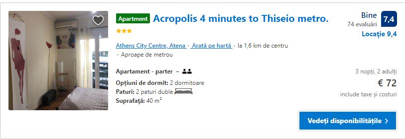 - Cazare 2: Acropolis 4 minutes to Thiseio metro – 72 euro / 3 nopti / camera dubla
