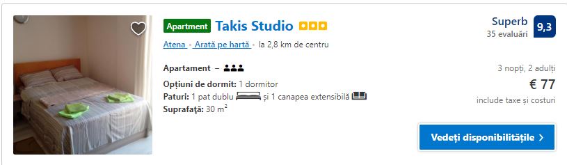 - Cazare 3: Takis Studio – 77 euro / 3 nopti / camera dubla