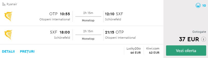 - Zbor: Bucuresti – Berlin, 37 euro, dus-intors, operat de Ryanair