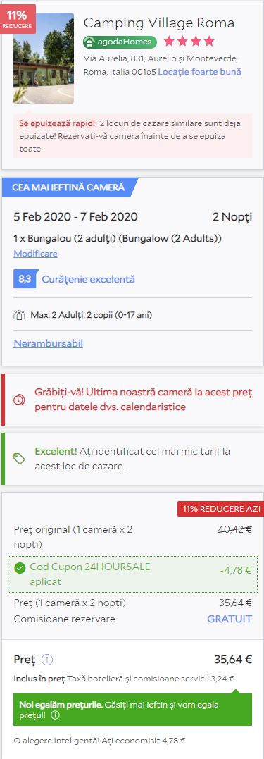 - Cazare 1: Roma Camping in Town – 36 euro / 2 nopti / camera dubla
