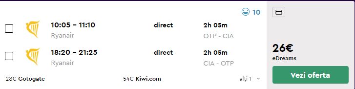 - Zbor: Bucuresti – Roma, 26 euro, dus-intors, operat de Ryanair