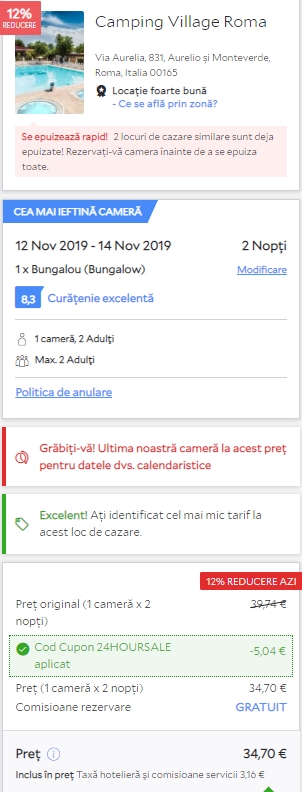 - Cazare 1: Roma Camping In Town – 35 euro / 2 nopti / bungalou