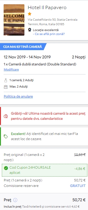 - Cazare 2: Hotel Il Papavero – 51 euro / 2 nopti / camera dubla