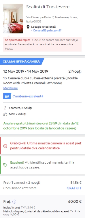 - Cazare 3: Stairs Of Trastevere – 74 euro / 2 nopti / camera dubla