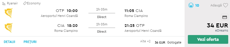- Zbor: Bucuresti – Roma, 34 euro, dus-intors, operat de Ryanair
