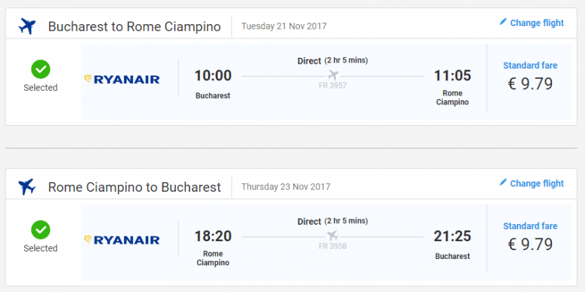 - Bucuresti – Roma, 20 euro, dus-intors, operat de Ryanair