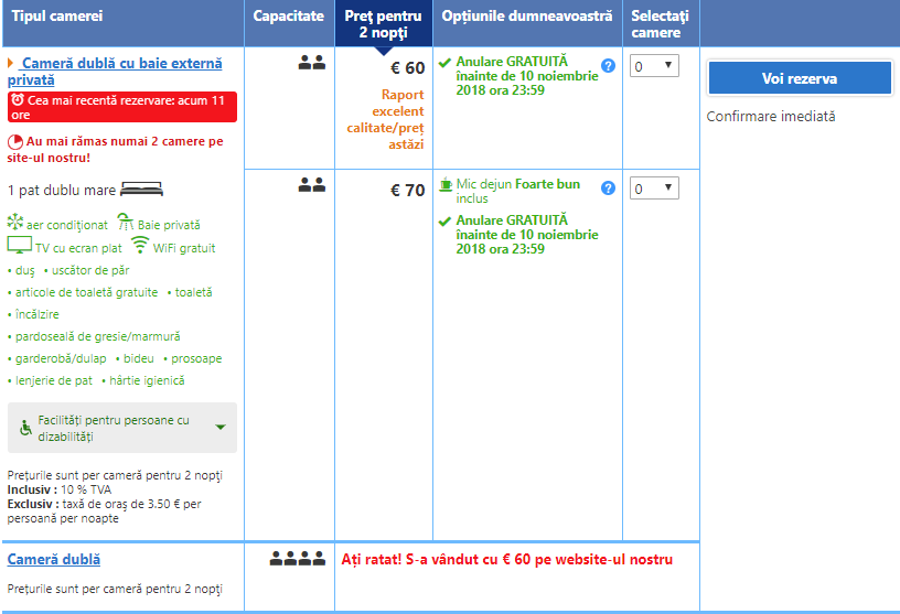 - Cazare: 70 euro / 2 = 35 euro/p