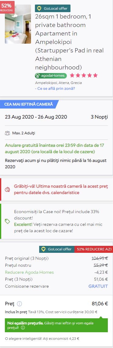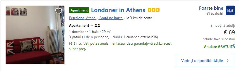 - Cazare 1: Londoner in Athens – 69 euro / 3 nopti / camera dubla