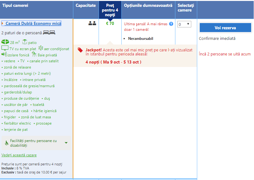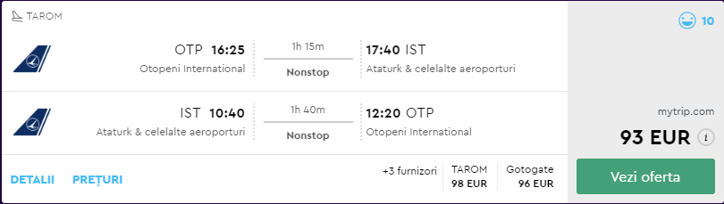 - Zbor: Bucuresti – Istanbul, 93 euro, dus-intors, TAROM, bagaj de cala inclus